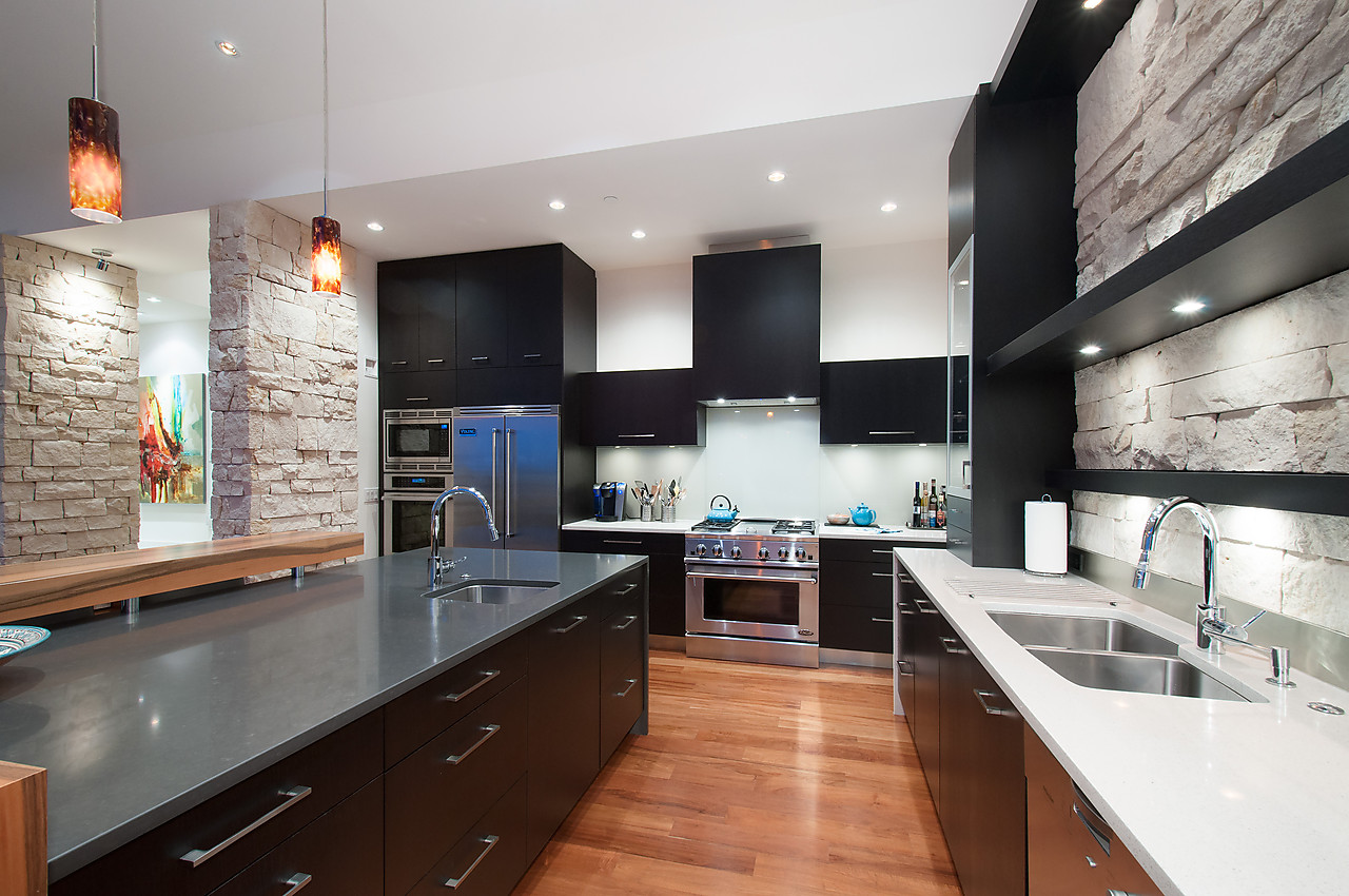"ANOTHER CRAIG CHEVALIER MASTERPIECE ON A BREATHTAKING SEMI-WATERFRONT 180 PROPERTY". Custom designed by one of West Vancouver's premier designers, this fine contemporary home (4600 sq.ft.) is situated on arguably one of the best properties in West Vancouver. Completely unobstructed close-in views, level driveway and entry opens to spectacular high ceilings, spacious principal rooms, expansive Kaaig doors fold back to completely open the south side of the home and embrace the indoor/outdoor ambience (1900 sq.ft.patio). View from "Penthouse" suite on the top floor is breathtakiong, high end fixtures and appliances throughout, Caribbean walnut flooring, Brazos Texas limestone rock exterior. Fabulous floorplan on a level 15,247 lot.